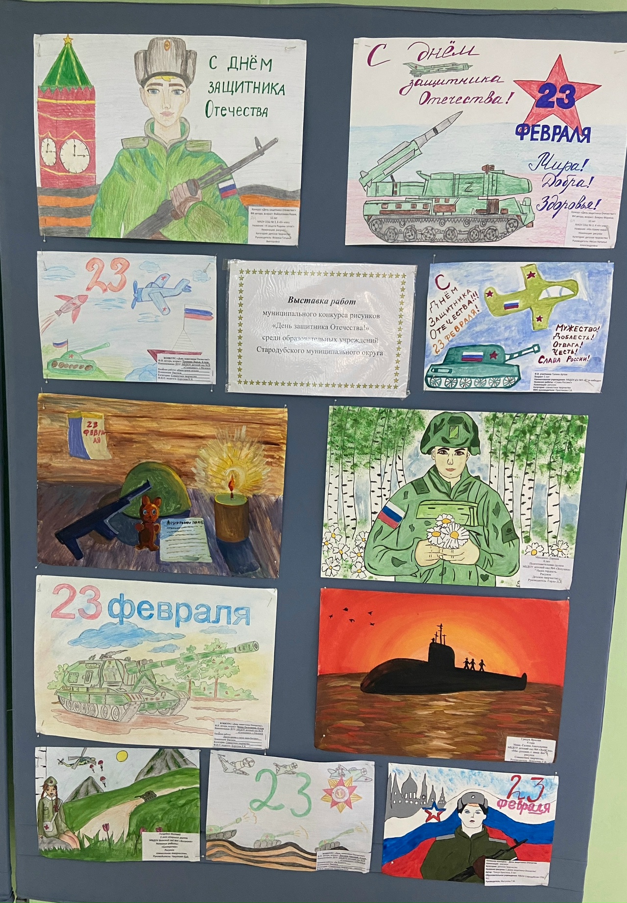 23 февраля прошла выставка работ муниципального конкурса рисунков «День защитника Отечества!» среди образовательных учреждений Стародубского муниципального округа.